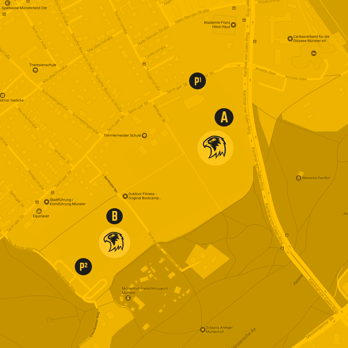 Die positive Grundstimmung innerhalb des Vereins wurde schon früh nach außen getragen, wodurch in Münster und im Umfeld ein starkes Interesse an den Hawks entstand. Die Seniorenmannschaft hat es durch mehrere Aufstiege bereits in die GFL2 geschafft.